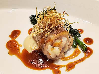 ![]() 魚料理 甘鯛と手長海老のロール ジュ・ド・ラングスティーヌとセロリラヴ |