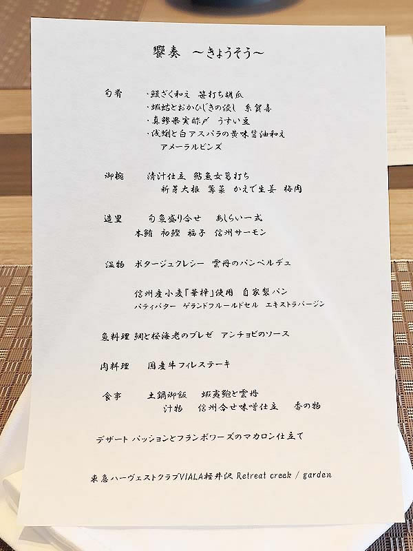 メニューは16,500円の「饗奏」だけですが
