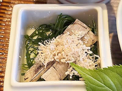 蝦蛄とおかひじきの浸し 糸賀喜 |