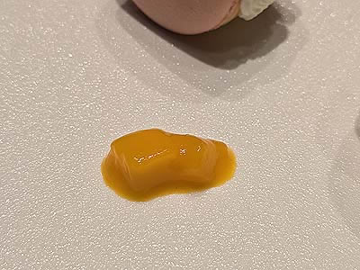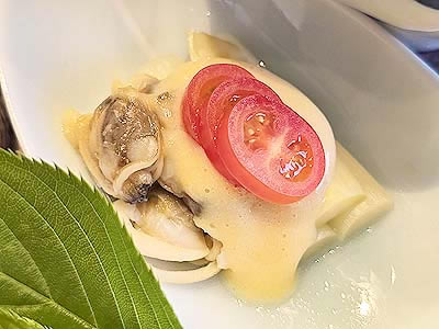浅蜊と白アスパラのエスプーマ黄味醤油合え