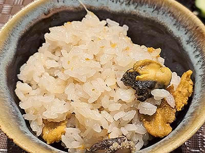 蝦夷鮑と雲丹たっぷりです