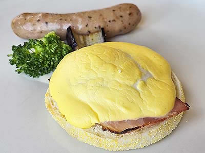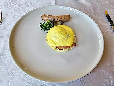 ![]() 滋賀県産卵とベーコンのエッグベネディクト ポークソーセージ ポムピューレ 青味野菜 |