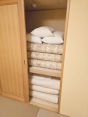 ![]() 押し入れには3名分の和布団セット 布団敷きはセルフサービスです |