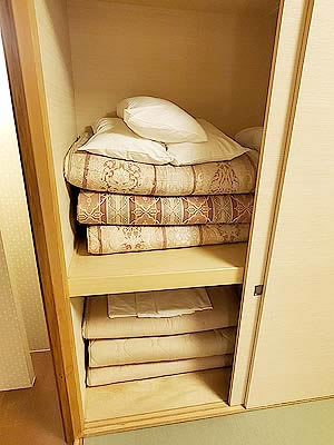 | 3名分の和布団セット 布団敷きはセルフサービスです |