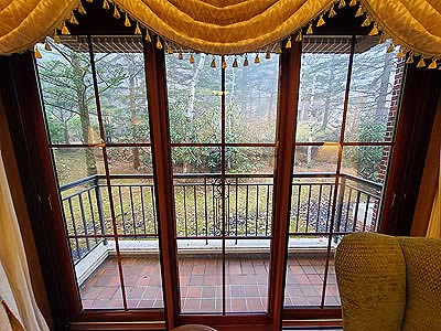 ![]() 窓の外はバルコニー |