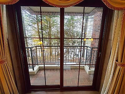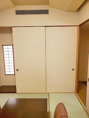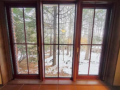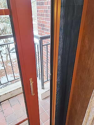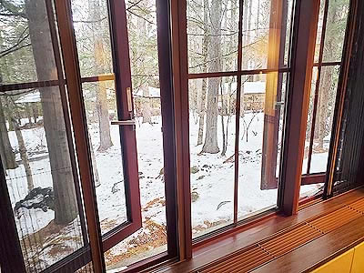 出窓は開閉し、サッシには折れ網戸が収納されています