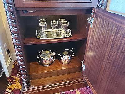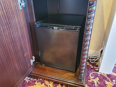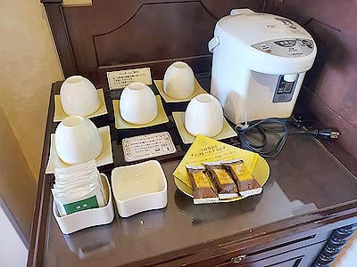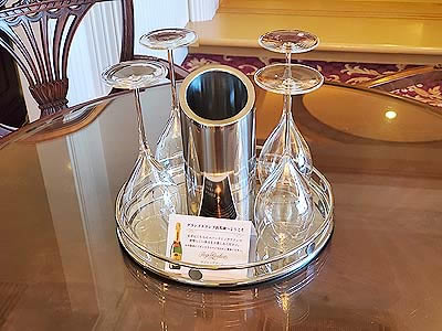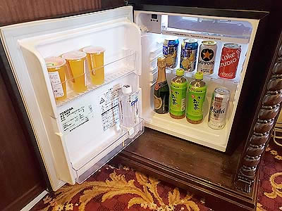 | 冷蔵庫には有料の飲み物と サービスのシャンパンとみかんゼリー |