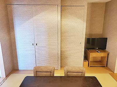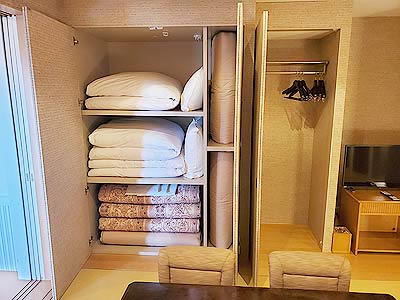 押し入れには3名分の和布団セット 布団敷きはセルフサービス |
