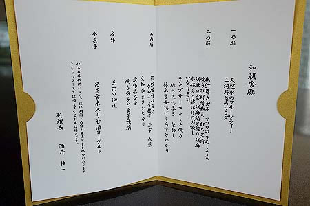 ![]() 和朝食膳のメニュー(1人3,024円です) |