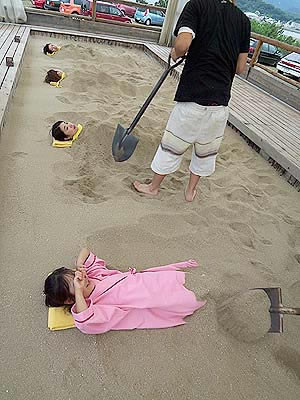 予約の時間が来たので、プール横の砂蒸し風呂へ