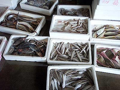 ![]() 「渡蟹3匹下さい」と言うお客様に 箱のは死んでるで、活きの良いの持って行け、と 水槽から出してきていました 2,000円だそうです |