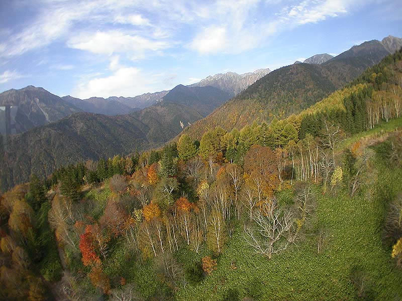 ヴィラ高山からさらに車で30分程奥地の観光名所「新穂高ロープウェイ」に乗り奥飛騨の紅葉を楽しんできました。寺社境内にあるような赤一色で綺麗な紅葉とは趣が異なっていて、山岳自然界の紅葉は色彩豊かに私たちの目を楽しませてくれました。子供もロープウェイから見得る鮮やかな紅葉に何らかの感動があったようで、思い出のお絵書きには鮮やかな紅葉が描かれていました。
