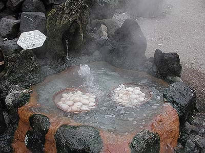 白身が半熟なので、お店の主人に食べ方を教えていただきました。
