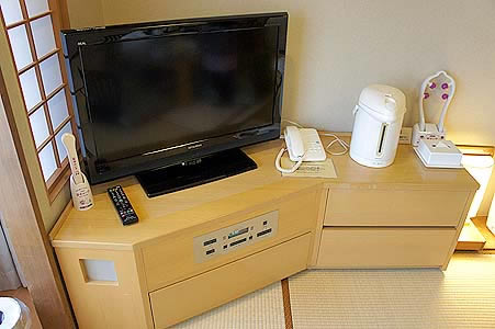 テレビボードには湯沸かしポットがあります