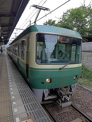 | ホテルから徒歩3分ほどの由比ガ浜から500形江ノ電に乗って 二駅目の鎌倉に行きます |