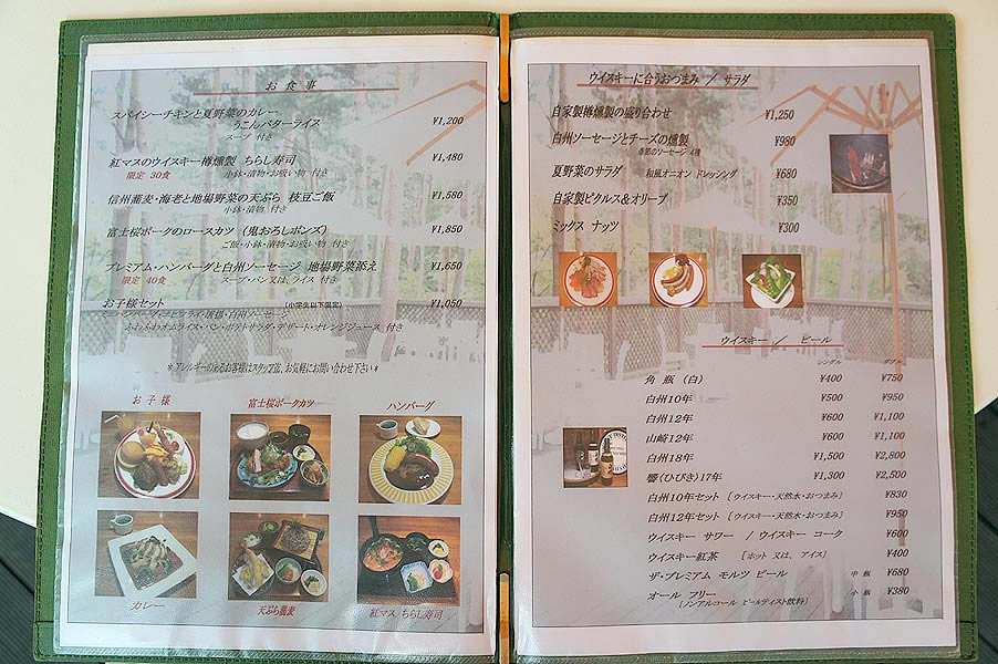 ![]() 子供をキャンプへ送った後、サントリーの白州蒸溜所内にある レストラン「ホワイトレラス」へ行きました |