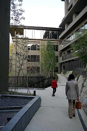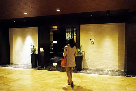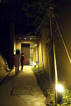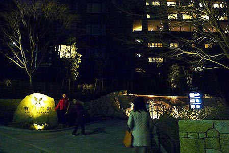 夜の東急ハーヴェストクラブ有馬六彩の裏口からホテルに戻ります