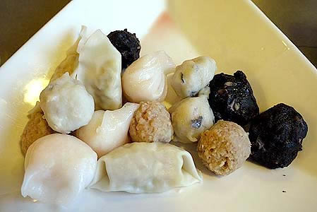 お肉のあとは餃子やツミレ団子 真っ黒いのはイカ墨だそうです