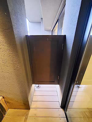 | ベッドルームからの景色 窓の外は消防用ベランダのため、出入りできません |