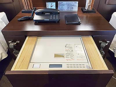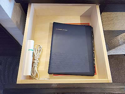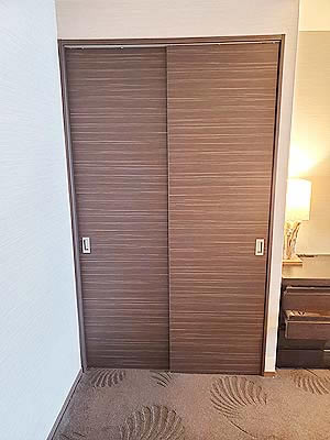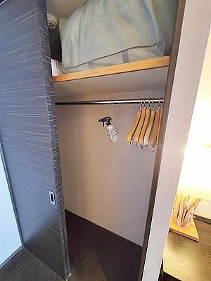 ![]() ワードローブ内 エキストラベッドの布団があります |