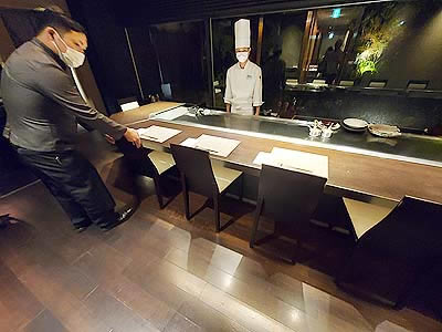 ![]() 店内の奥にある鉄板コーナーへ グランデコから移動されたシェフが対応いただきました |