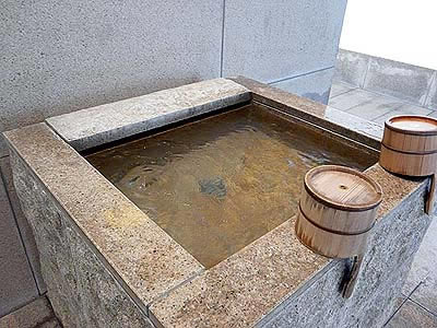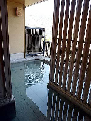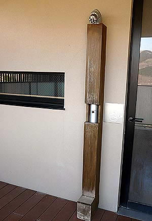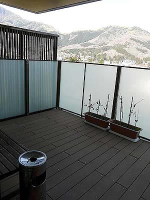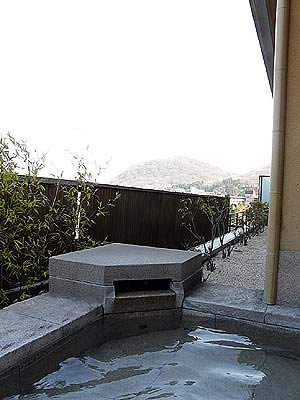 ![]() 脱衣場のウッドデッキには灰皿の用意 |