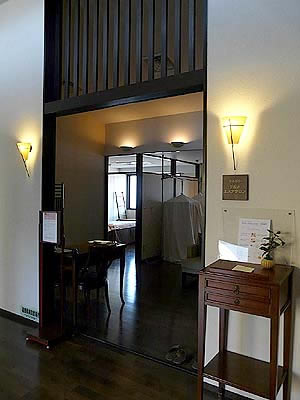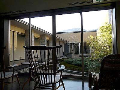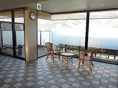 ![]() 脱衣場の窓側にはテーブルセットが置かれています |