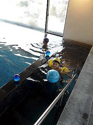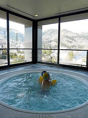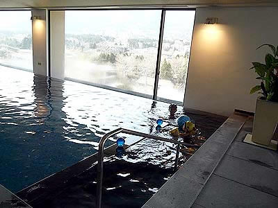 ![]() プールの後は温泉大浴場やまなみの湯で寛ぎました (写真は、プールに入る前、午後3時丁度に撮りました) |