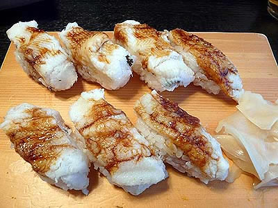 ![]() 次男の好物の穴子寿司 ¥2,100− 丁寧な、好い仕事をした香り豊かな握りです |