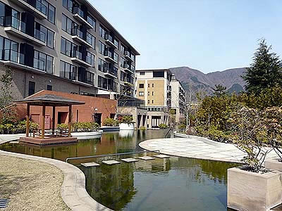 ![]() ガーデンプールサイドから箱根甲子園を望む |
