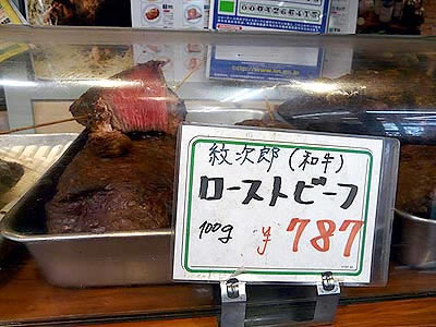 ![]() 紋次郎系統の高級和牛のローストビーフ ¥787-/100gは ものすごくお値打ち! 自宅に帰って食べたところ、想像以上の美味しさ 長男は「ホテルより美味しい!」って言っていました |