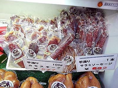 ![]() 手造りサラミソーセージは辛味が少なく、 香り高い逸品で、サラダに入れても美味しかった |