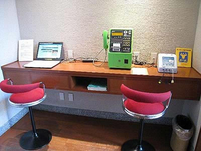 ![]() 本館ロビーでメールチェックなどをして暫し休憩です。 ここでは本館・アネックス棟共に 無線LAN(無料)が設置されており、 お部屋で快適なネット接続が可能です。 |