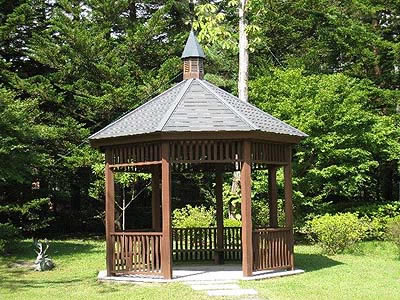 ![]() 中庭の東屋。 アネックス棟の建設に伴い現在の位置に移されました。 |