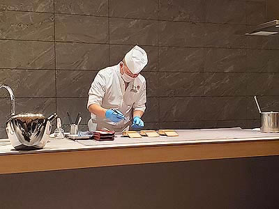 ![]() 料理人の仕上げ作業が見えるのは楽しい |
