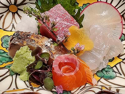 ![]() 造里 旬魚盛り合せ あしらい一式 |