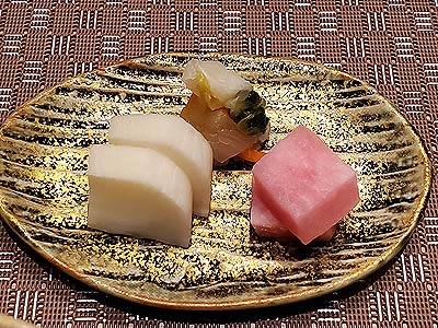 ![]() 自家製新からすみ 雪輪大根 濃厚な旨味と塩味で酒がススミマス |