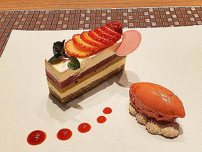 ![]() イチゴとマスカルポーネのガトー バラといちごのソルベ |