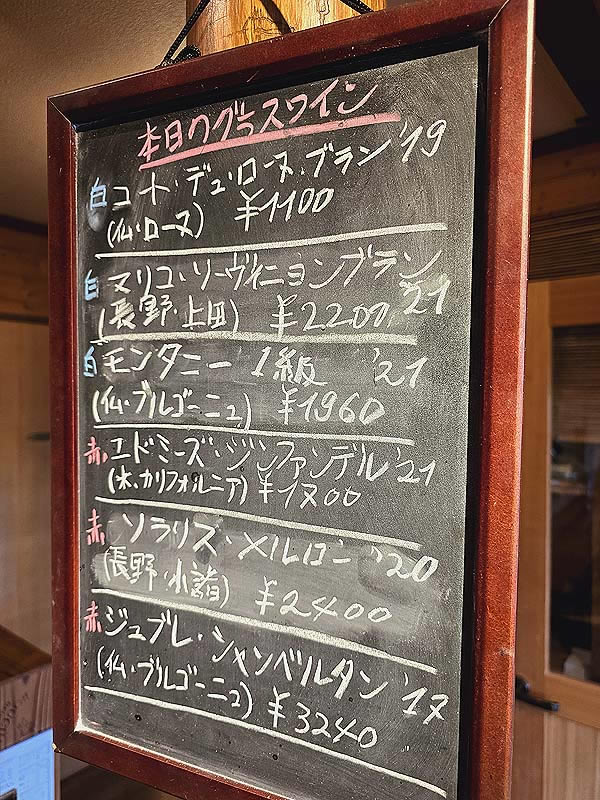 ![]() メニューとは別にあるボトルリストで白ワインを頼みました |