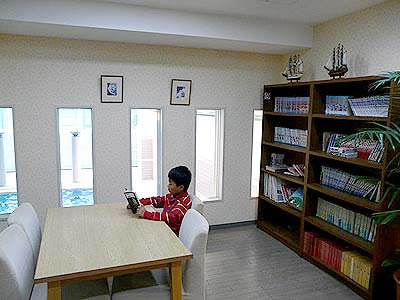 | 宿題が終わった長男は、 ライブラリーでマンガ本を楽しみます |