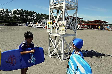 ![]() 我家の子供達はボディーボード初体験 念の為ライフジャケットを着せました |