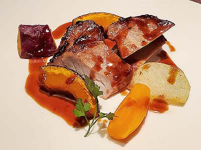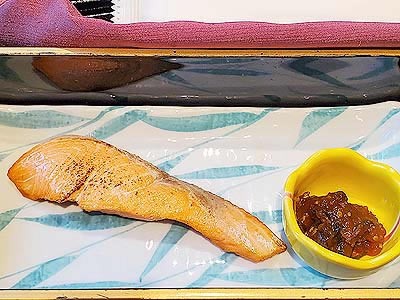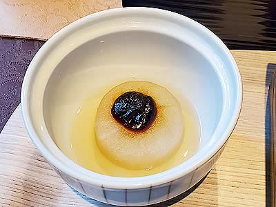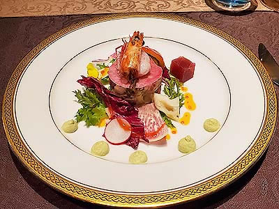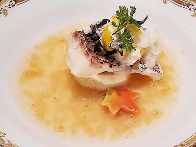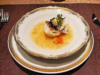 真鯛のバップールと帆立貝のムース 木耳、柚子、百合根、コーンが入っていて |