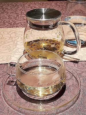| コーヒー、紅茶、またはハーブティー カモミールベースのサフランティーでした |