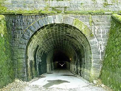 ![]() 1904年(明治37年)に完成した石造道路トンネル 幅員3.5m 長さ445.5mは石造道路トンネルとしては日本最長です |