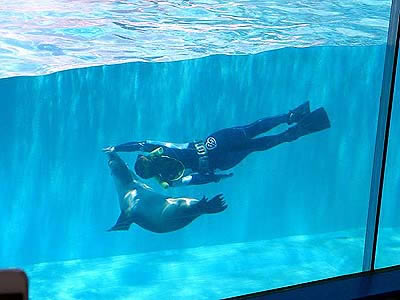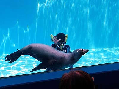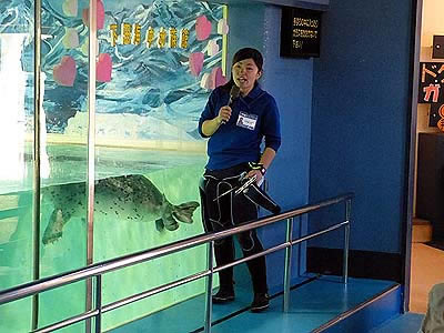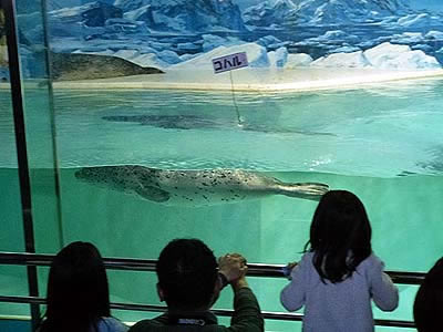 | アザラシのガイド給餌から次のマリンスタジアムのアシカショーまで 少し時間があったので、海の生物館シーパレスを訪ねます |