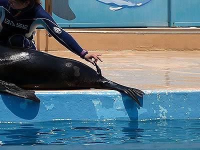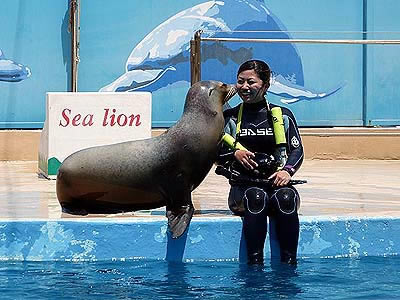 下田海中水族館ではイルカショー、アシカショー、そして色々な生物のガイド給餌ショーが開催されます。 |