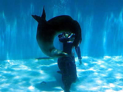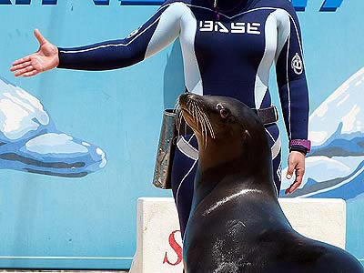 ![]() 柔らかい体をいかした回転技 トレーナーと息のあった所を見せ付けます |
