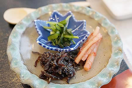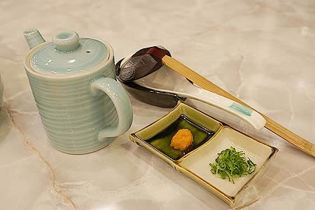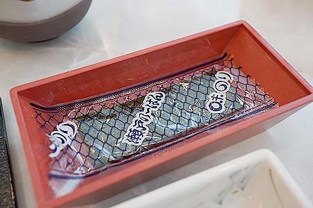 ![]() 醤油・丹後の鳴き砂のお塩 左利きでは無いのに右に置かれていて、食べ辛かった |