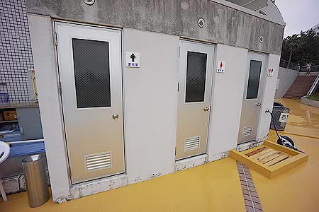 プール脇の更衣室とトイレ
