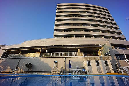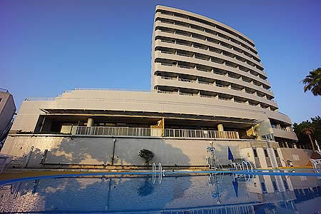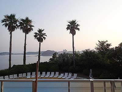![]() プールからのホテル 目の前には露天風呂の柵が見えます |